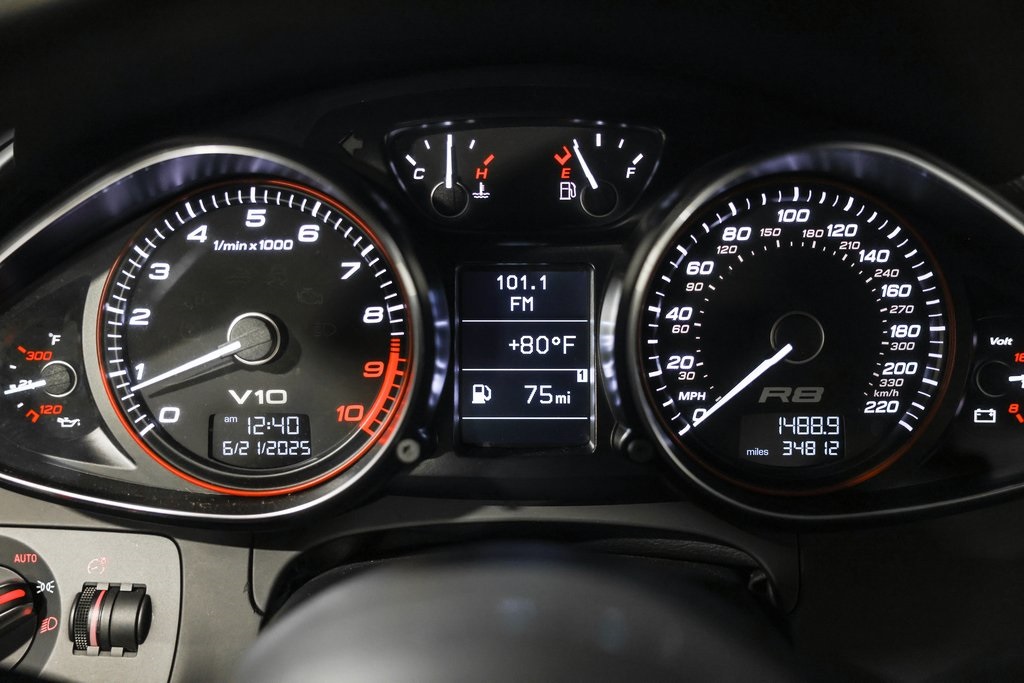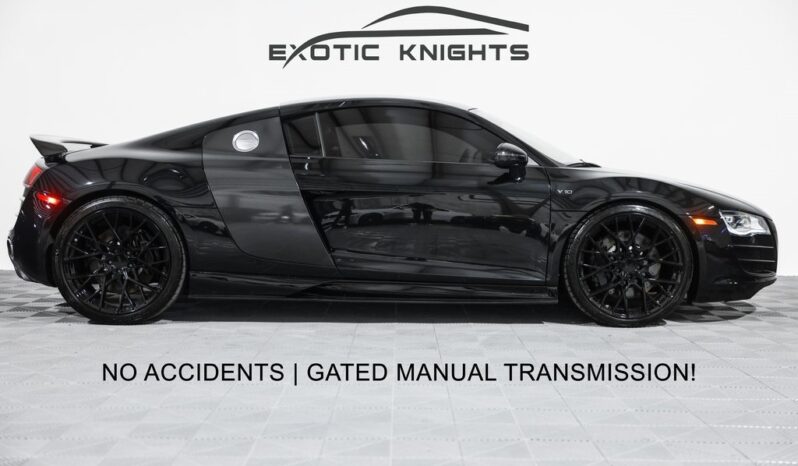 Price includes 3 year unlimited mile warranty with $100 deductible.Phantom Black Metallic 2012 Audi R8 5.2 quattro quattro 6-Speed Manual 5.2L V10 FSI DOHC Black Leather.Services we performed:New clutchOil changeSpark plugsThrow out bearingAir filtersPainted wheelsBrake bleedClutch bleedPainted front bumperNew windshieldRecent Arrival!Awards: * 2012 KBB.com Total Cost of Ownership AwardsReviews: * If your idea of a supercar is one with concept-car styling, aggressive performance and an interior filled with creature comforts, the Audi R8 is an appealing choice. Perhaps more significantly, it's an exotic that's easy to live with on a daily basis, a car that is at home on both road and track. Source: KBB.com * Potent engine choices; slick manual shifter; comfortable cabin; easy to drive. Source: Edmunds