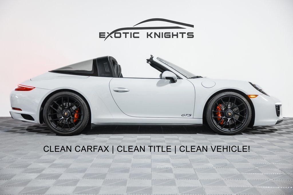 Clean CARFAX. White 2019 Porsche 911 Targa 4 GTS AWD 7-Speed Porsche Doppelkupplung (PDK) 3.0L H6 Turbocharged DOHC 24V LEV3-LEV160 450hp AWD, 4-Way Sport Seats Plus, 4-Wheel Disc Brakes, 8 Speakers, ABS brakes, Adaptive suspension, Air Conditioning, Alloy wheels, AM/FM radio: SiriusXM, Apple CarPlay, Automatic temperature control, Brake assist, Bumpers: body-color, CD player, Convertible roof lining, Delay-off headlights, Driver door bin, Driver vanity mirror, Dual front impact airbags, Dual front side impact airbags, DVD-Audio, Electronic Stability Control, Exterior Parking Camera Rear, Four wheel independent suspension, Front anti-roll bar, Front Bucket Seats, Front Center Armrest, Front dual zone A/C, Front reading lights, Fully automatic headlights, Garage door transmitter: HomeLink, Glass rear window, Headlight cleaning, Heated door mirrors, High intensity discharge headlights: Bi-Xenon, Illuminated entry, Integrated roll-over protection, Knee airbag, Low tire pressure warning, Navigation System, Occupant sensing airbag, Outside temperature display, Overhead airbag, Overhead console, Partial Leather Seat Trim w/Alcantara Seat Centers, Passenger cancellable airbag, Passenger door bin, Passenger vanity mirror, Porsche Communication Management, Power convertible roof, Power door mirrors, Power driver seat, Power passenger seat, Power steering, Power windows, Radio data system, Rain sensing wipers, Rear anti-roll bar, Rear fog lights, Rear window defroster, Remote keyless entry, Security system, Speed control, Split folding rear seat, Spoiler, Sport Exhaust System w/Tailpipes in Black, Sport steering wheel, Tachometer, Telescoping steering wheel, Tilt steering wheel, Traction control, Trip computer, Variably intermittent wipers, Wheels: 9J x 20" Fr/12J x 20" Rr 911 Turbo S.20/26 City/Highway MPGAwards: * 2019 KBB.com Brand Image Awards * 2019 KBB.com Best Resale Value Awards